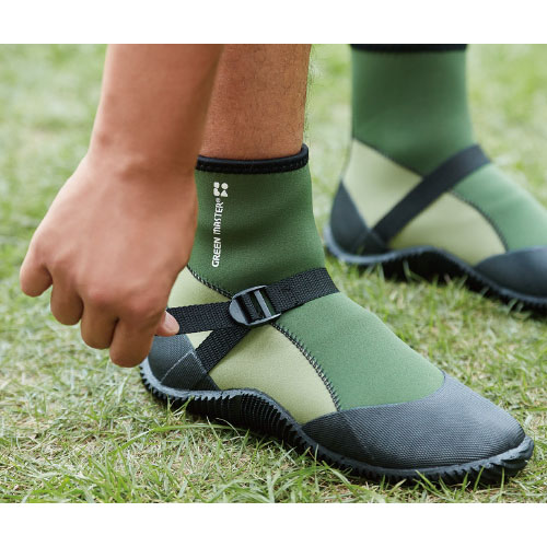軽くて伸縮性のよい合成ゴムを使用しているため、やわらかく脱ぎはきが楽にでき、調整ベルトがついているため、自分に合ったサイズに調節可能となっております。